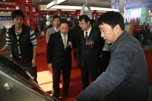 农业部农业机械化管理司刘恒新副司长、农业部农业机械化技术开发推广总站(农业部农机监理总站)刘宪站长观看福建顺添环保科技有限公司产品。