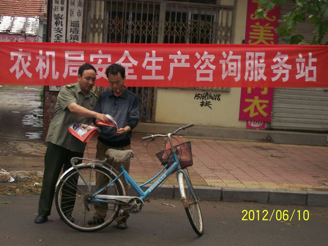今年6月是全国统一开展的第十一个“安全生产月”,组织开展好“安全生产月”活动是开展“安全生产基层基础强化年”活动的重要内容。近阶段,历城区农机局按照省市安委会的统一部署和区委区政府关于加强安全生产工作的一系列指示精神,结合我区“农机安全月”活动方案,大力开展农机安全生产宣传活动。 截止目前,先后在遥墙、临港、唐王等街镇办举办安全宣传活动八次,悬挂宣传条幅八十余幅,发放宣传材料3000余份,为进一步强化我区农机安全监管,有效遏制农机重特大事故的发生,确保我区农机安全生产奠定了良好的基础。 图为宣传活动现场。