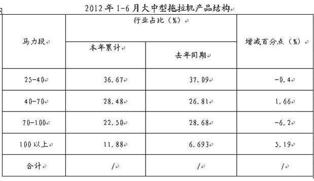 | 2012年上半年拖拉机行业骨干企业运行状况 | ||||