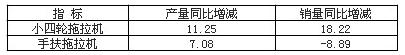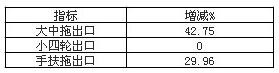 手扶拖拉机生产总量同比增长7.08%,销量同比下降8.89%。 三、大中拖和手扶拖拉机出口形势良好。 大中型拖拉机和手扶拖拉机出口同比快速增长,小四轮拖拉机同比持平。