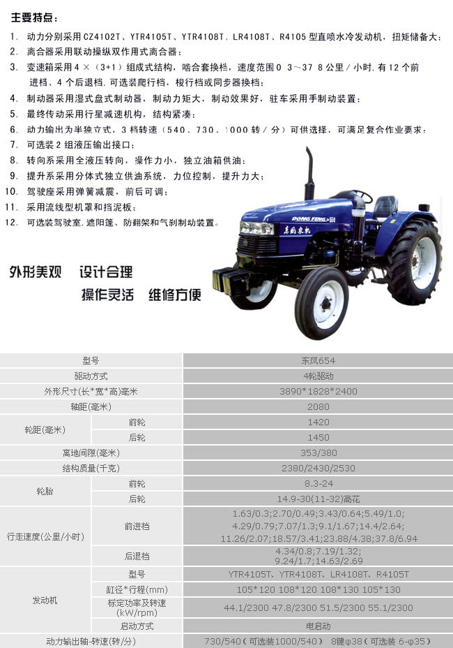 公司组织拖拉机及配套农机具生产已有50多年历史,主要产品累计产销超过280万台,遍及国内31个省、市、自治区;公司拥有自营出口权,产品远销世界117个国家和地区。现主要生产东风牌6-18马力系列手扶拖拉机,东风牌20-125马力系列轮式拖拉机,常拖牌系列柴油机、旋耕机、收割机、配套件,DFAM牌传动零部件,城镇阳光牌系列机具等五大类200多个品种;东风农机已成为中国拖拉机工业具有重要影响力的企业之一。